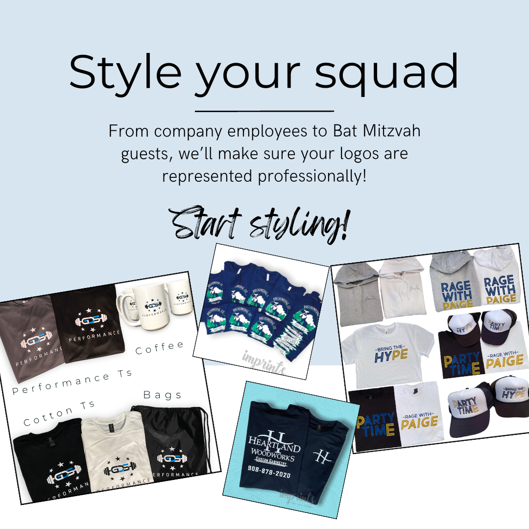 Need a bulk order? Imprints is ready to make it happen. Whether you have a fully created logo or just an idea we will help bring your vision to life!